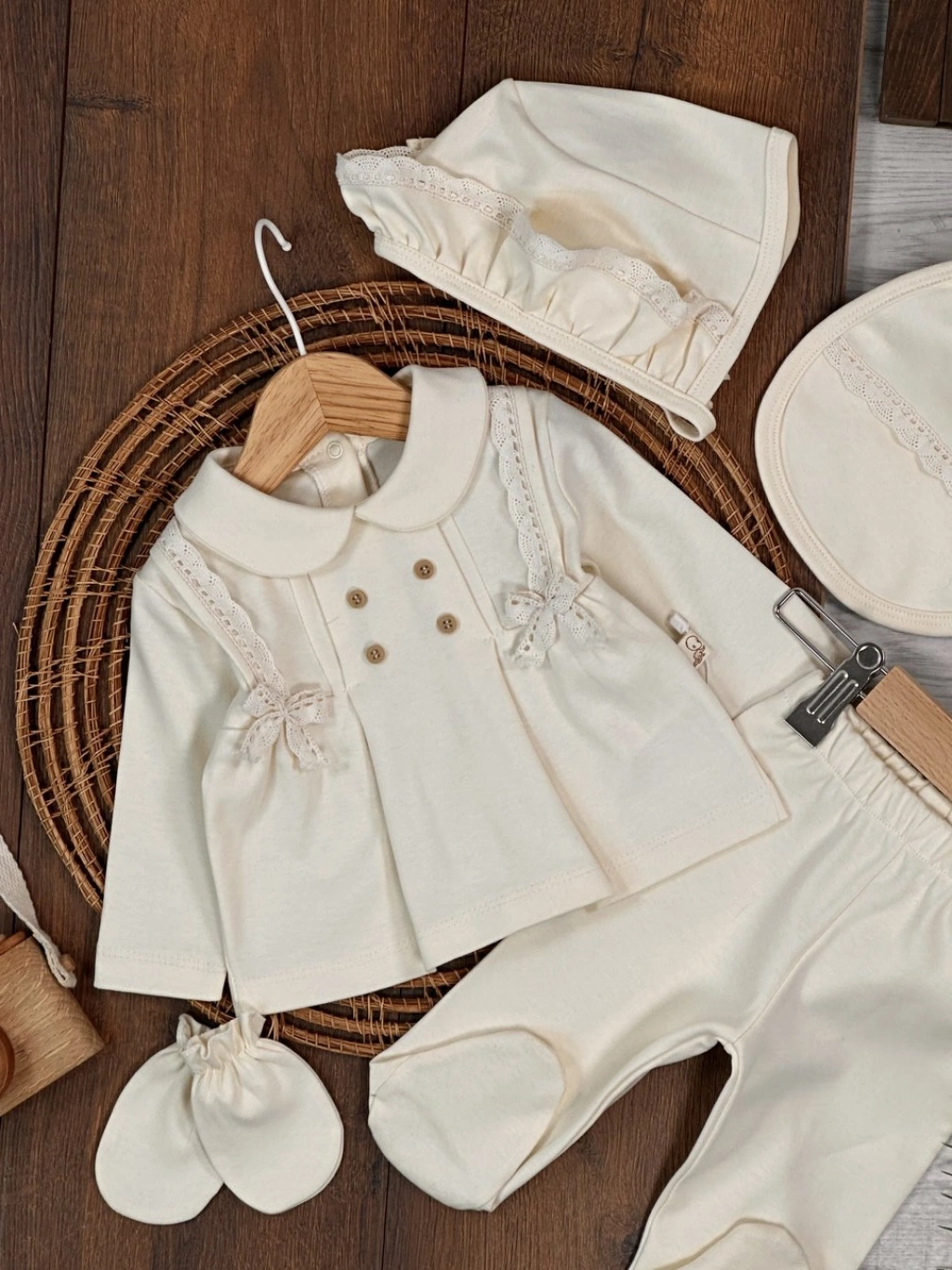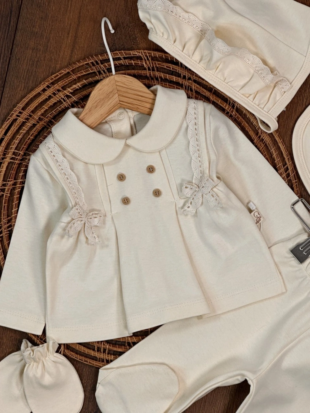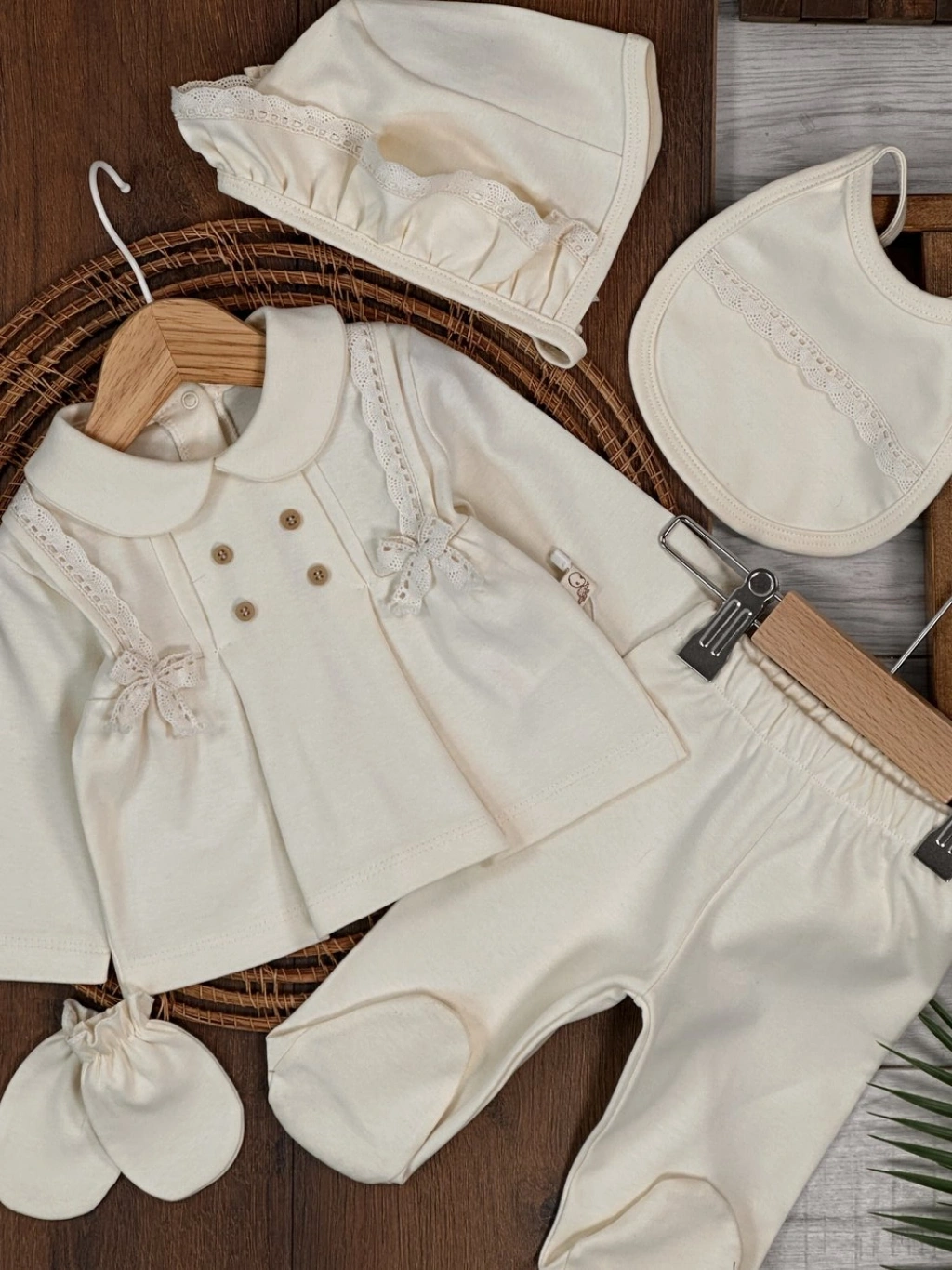 Yüksek Kalite Pamuk Kız Bebek 5li Hastane Çıkış Seti