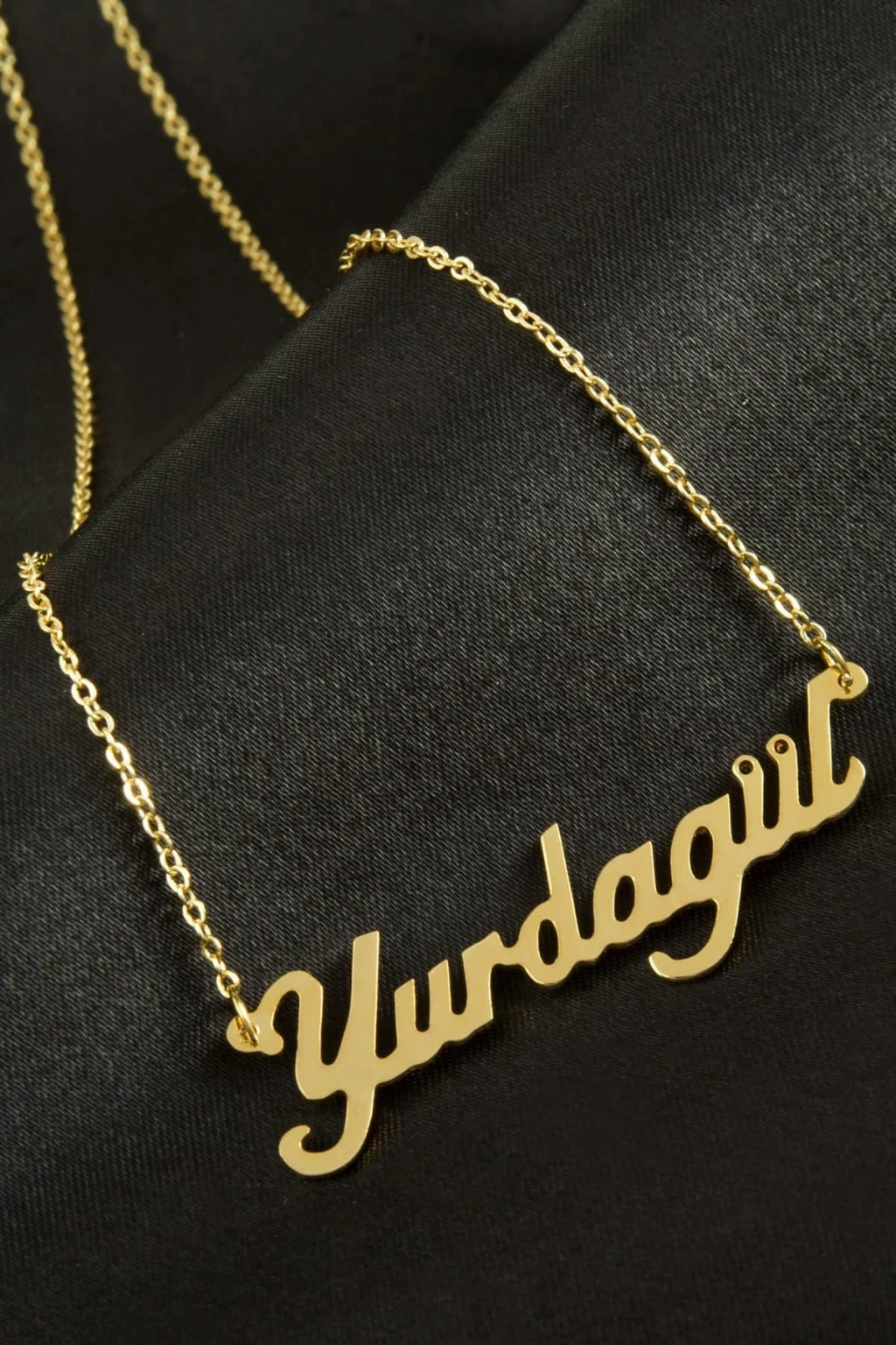 Yurdagül isimli kolye. İsimli kolye pirinç madeninden ve altın kaplamalıdır. Kişiye özel üretilmektedir.Yazdırmak istediğiniz ismi bize mesaj olarak iletmeniz gerekmektedir. Kullanıma bağlı olarak uzun süre kullanıma uygundur. Ürün malzemesi 1.sınıf kalitededir. Ürün ve zinciri sarı renktedir. Ürün zincir boyu 45 cm ve ürün üzerindeki isimler yaklaşık 3 cmdir. İsim boyları ürün ismine göre degişiklik göstermektedir.