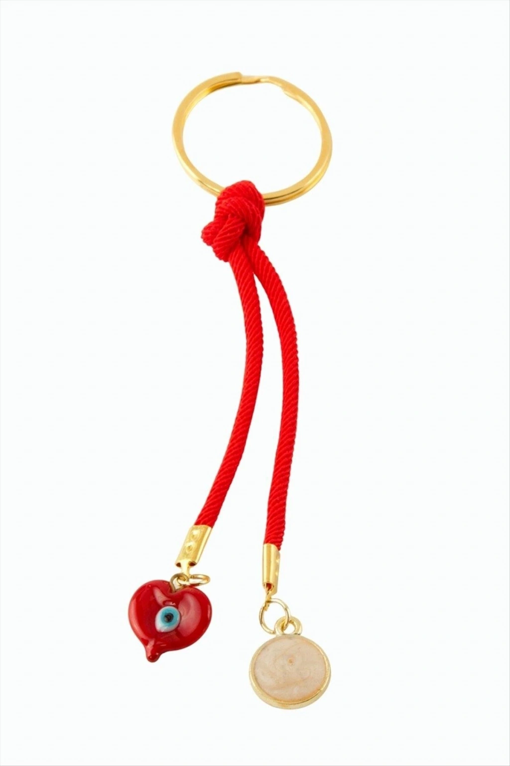 Anahtarlık; Ürün malzemesi el işliği ile hazırlanmış nazar cam aparatı , mine boyama ve metaldir. Kartlıdır. Anahtarlık boyu 10 cmdir. Ürün nazar figür şekli yuvarlak ve kalpli olarak gönderilecektir.