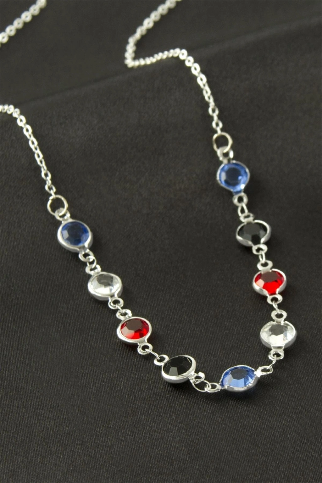 Kolye; Ürün malzemesi metal ve kristal taşlıdır. Ürün zincir uzunluğu 45 cmdir. Kartlıdır.