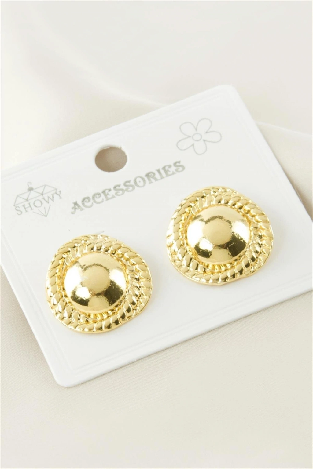 Küpe; Ürün malzemesi metaldir. 1 nci sınıf kaliteli malzemeden üretilmiştir. Küpe çapı 2 cmdir. Kartlıdır.