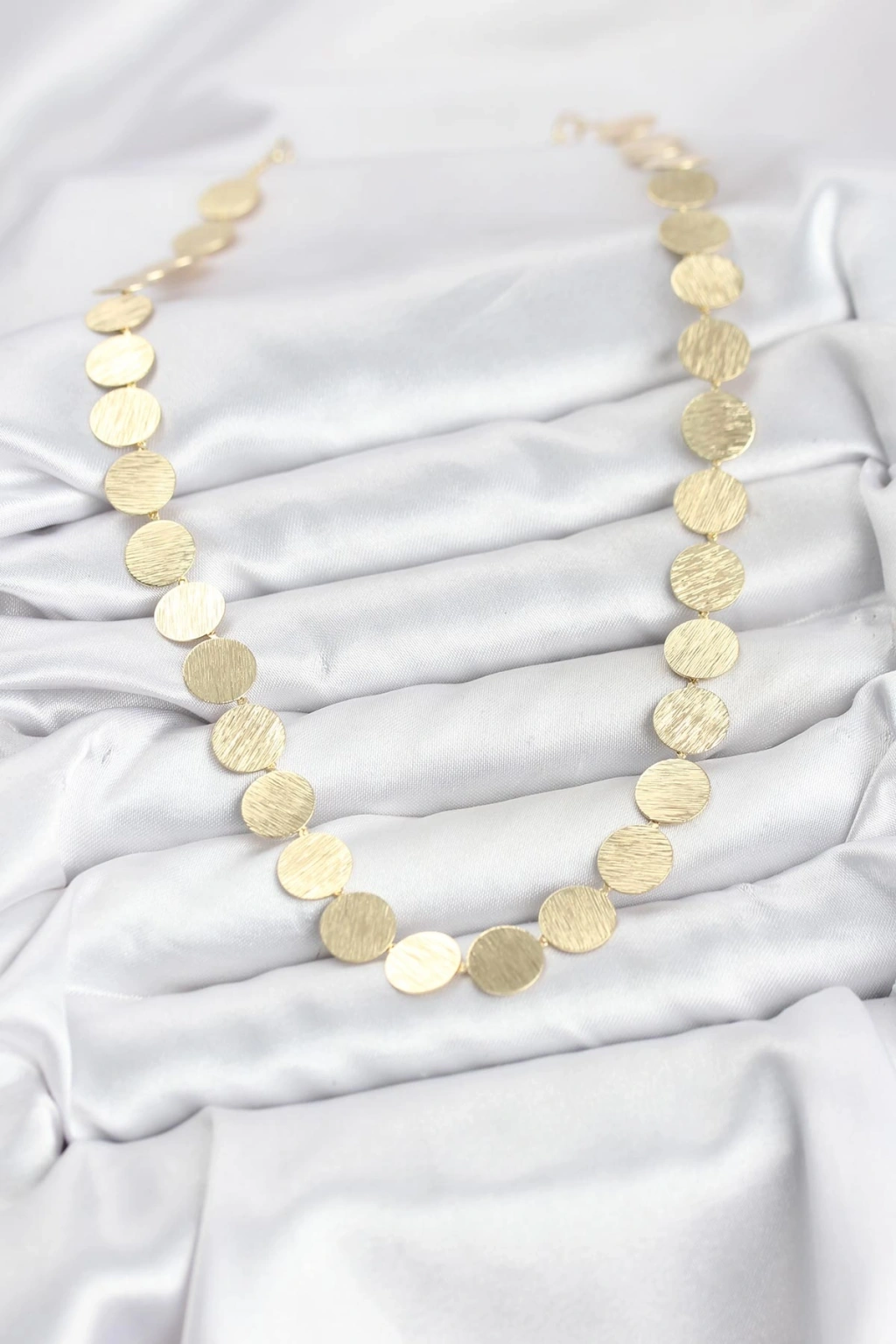 Yuvarlak Plaka Model Gold Renk Kadın Kolye - TJ-BKO10827