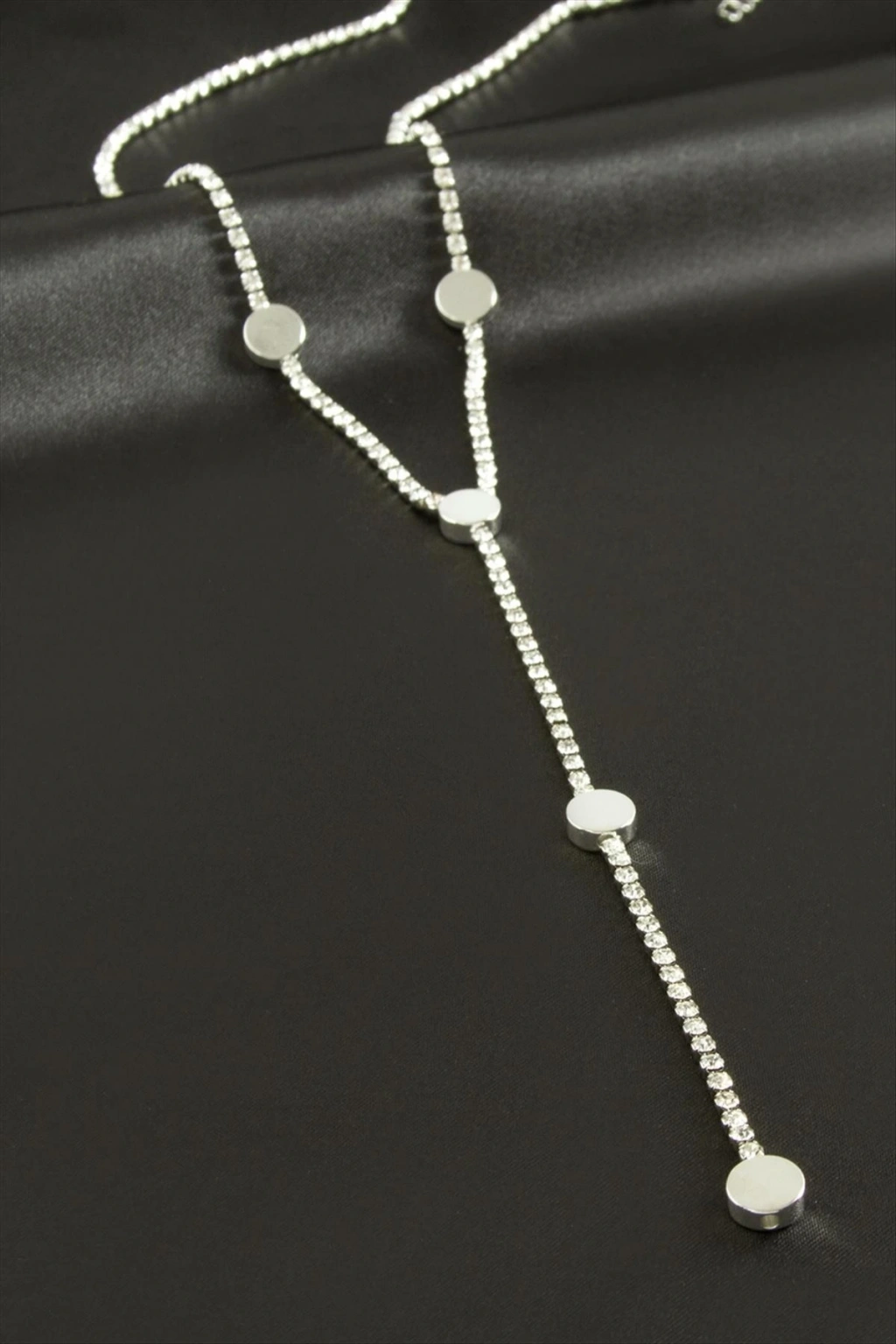 Yuvarlak Şerit Taşlı Çelik Y Kolye
