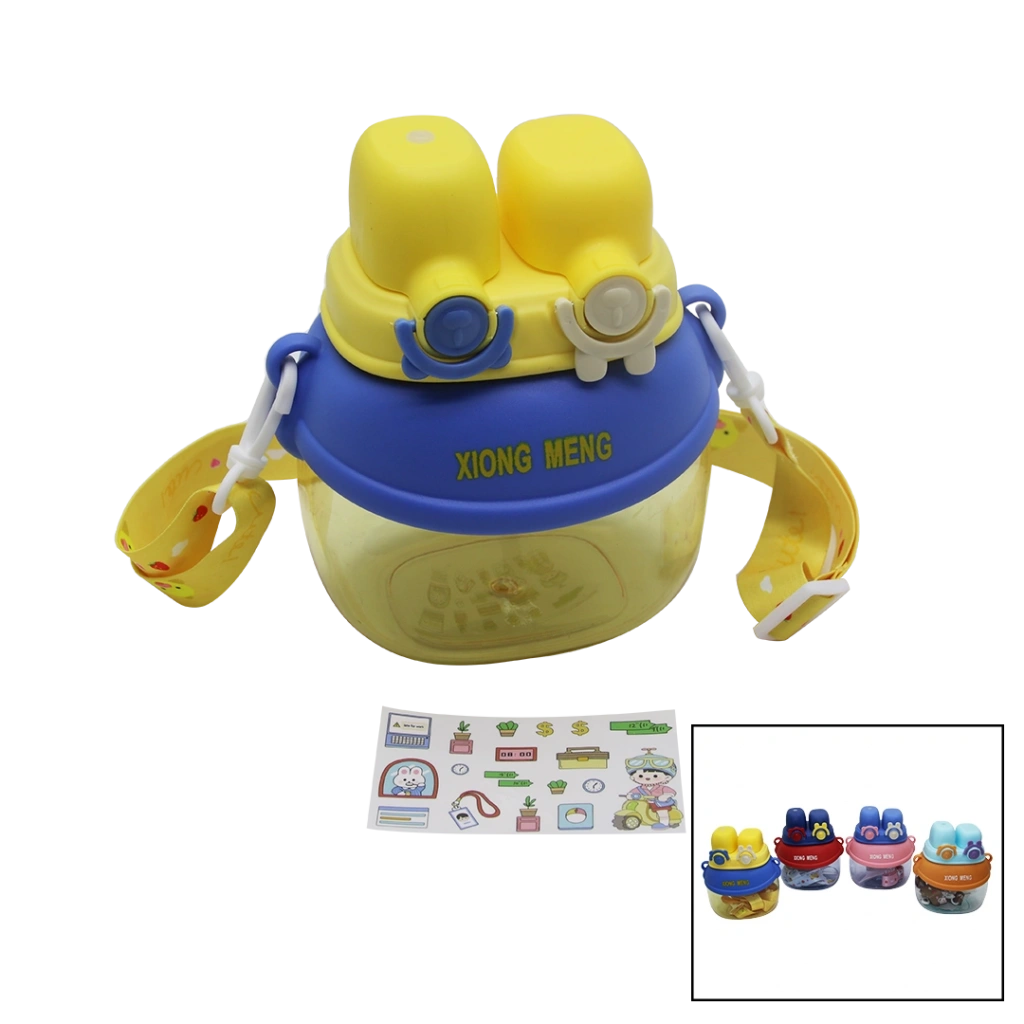 YÜZ MODELİ - 2 KİLİTLİ KAPAK RENKLİ MİKA KRİSTAL SULUK MATARA PİPETLİ - NAYLON ÇANTALI - ASKILI 1280ML (4887)