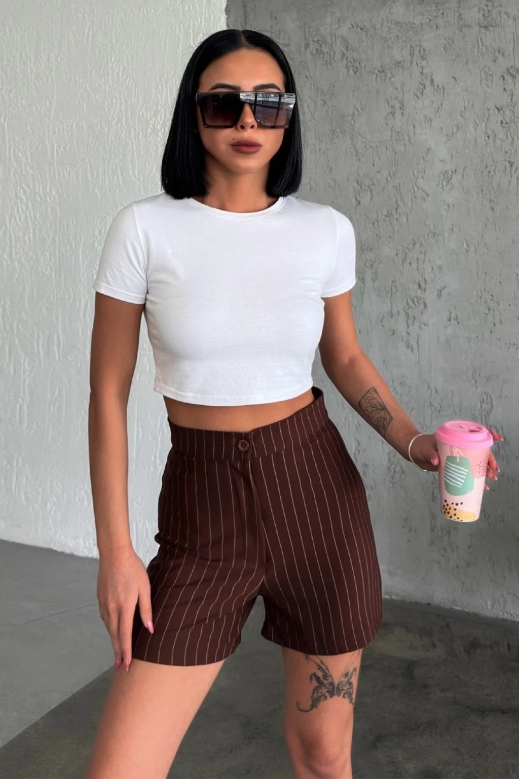 -Bu göz alıcı yüksek bel krep çımalı çizgili şort, doğanın sıcak ve zarif tonlarından esinlenerek tasarlandı. Kahverengi rengi, doğallığı ve şıklığı bir araya getirirken, esnek likralı kumaşı ise gün boyu rahatlık sunuyor.