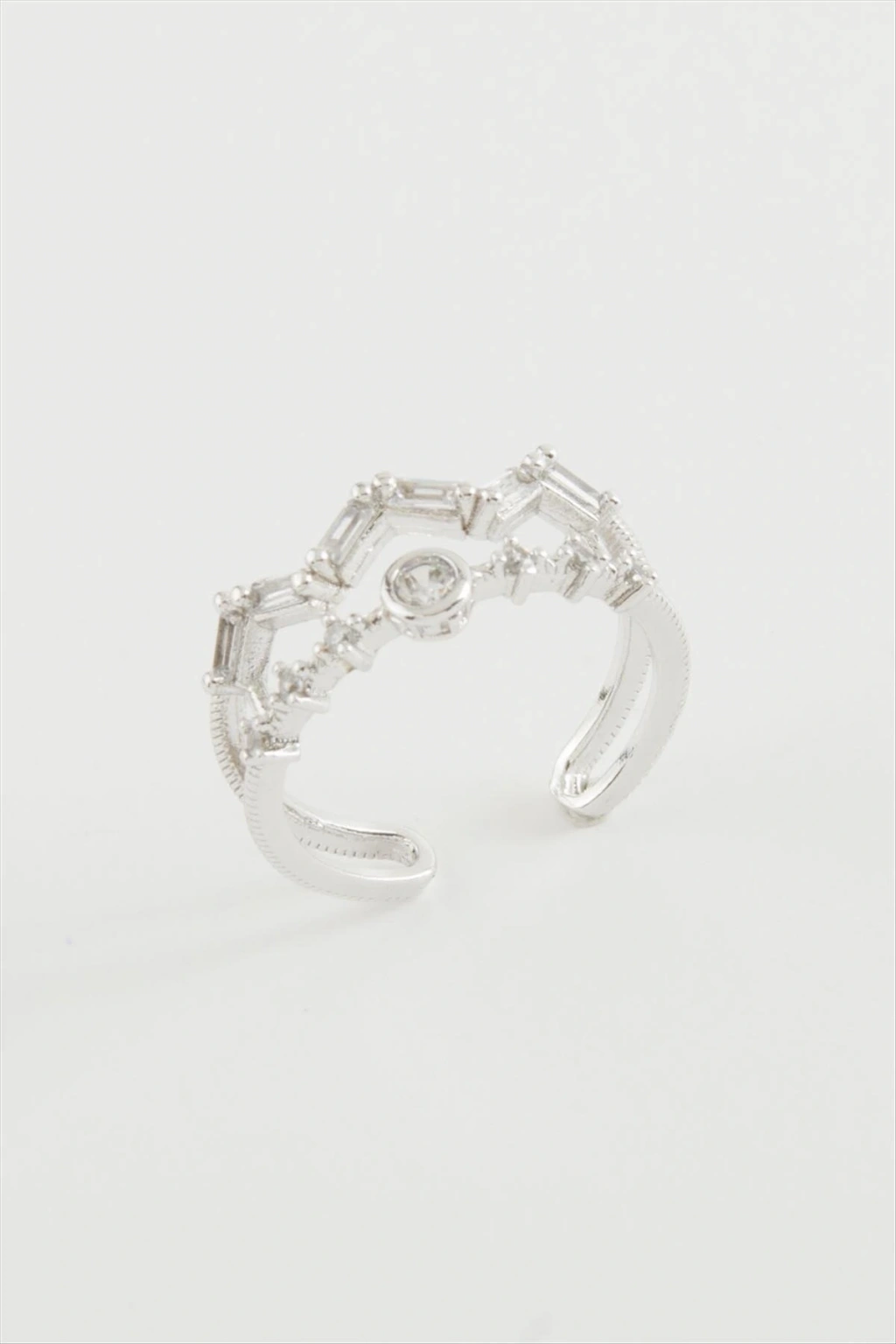 Yüzük; Ürün malzemesi zirkon taş ve metaldir. 1 sınıf kaliteli malzeme kullanılmıştır. Yüzük parmağa göre ayarlanabilir.
