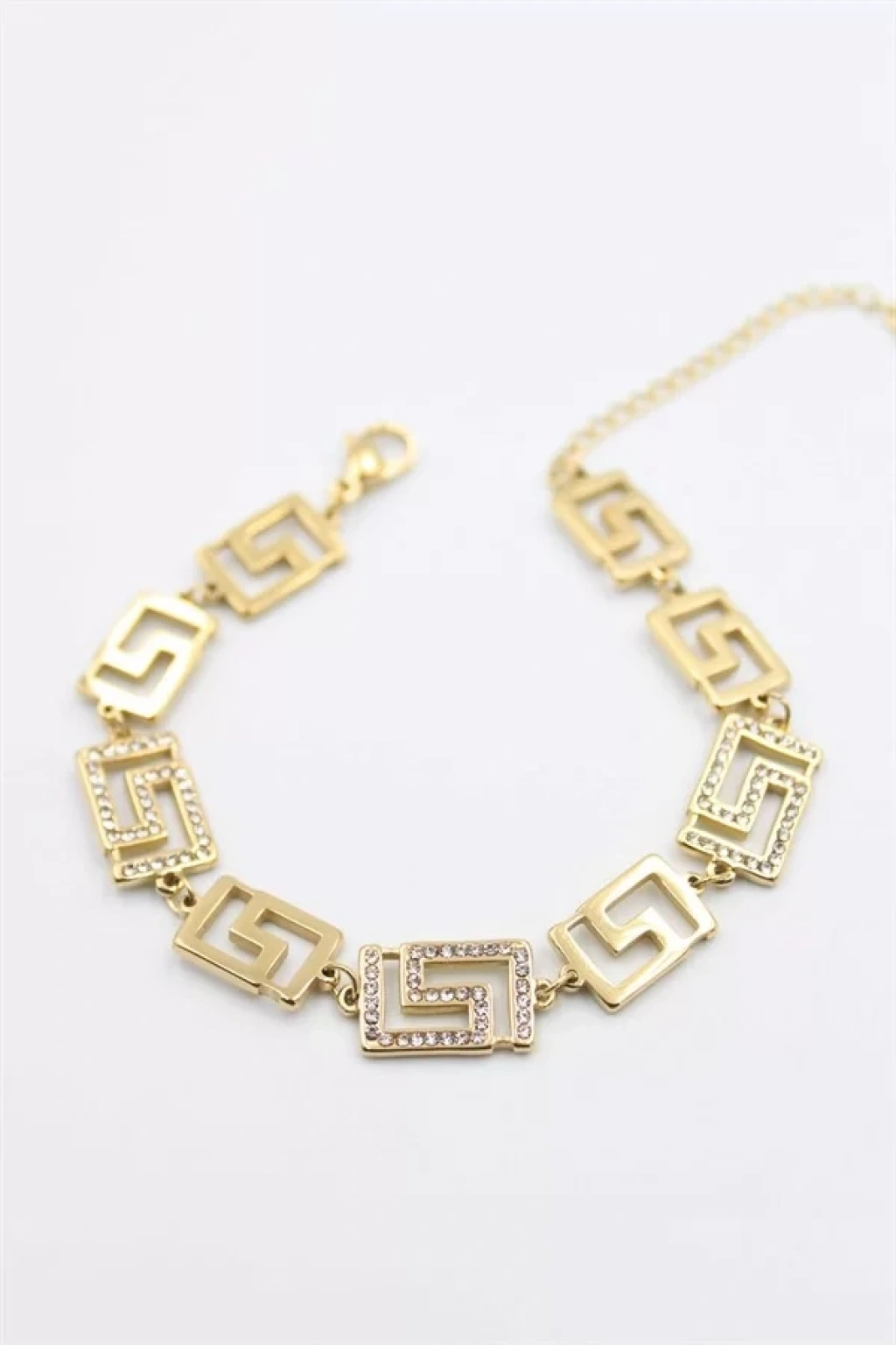 Taşlı Plaka Bileklik - Altın