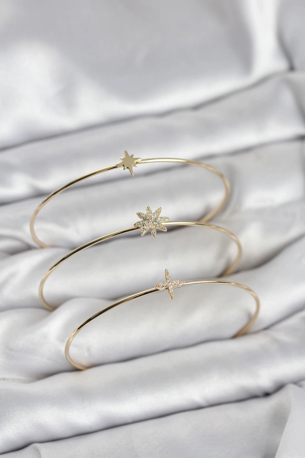 Zirkon Taşlı Kutup Yıldızı Model Gold Renk 3'lü Kadın Bileklik Kombini - TJ-BB8359