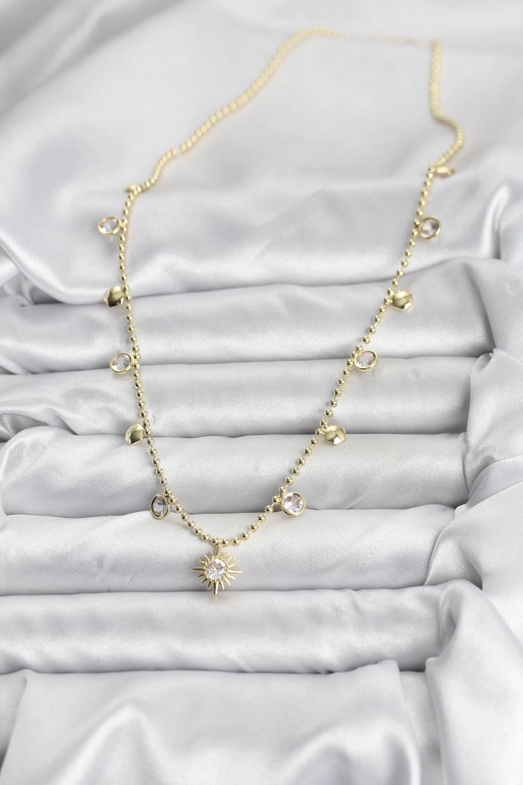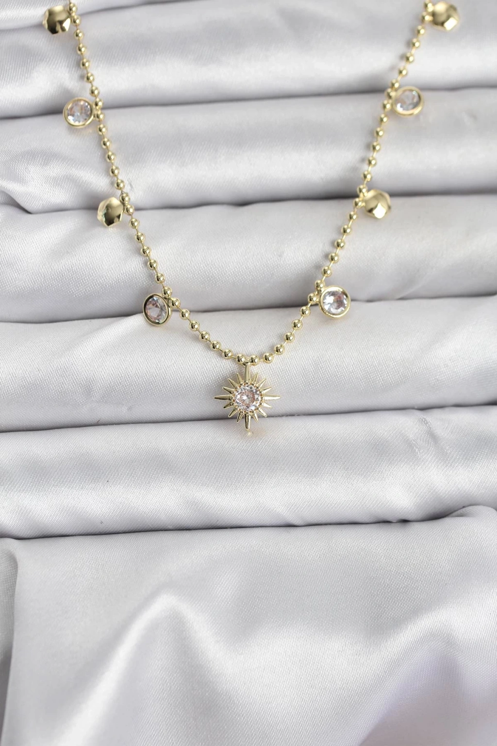 Zirkon Taşlı Kutup Yıldızı Model Pirinç Gold Renk Kadın Kolye - TJ-BKO10648