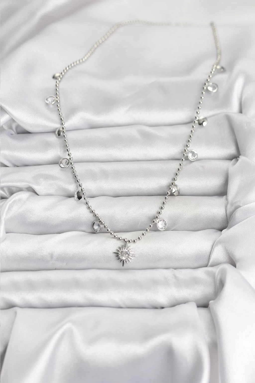 Zirkon Taşlı Kutup Yıldızı Model Pirinç Gümüş Renk Kadın Kolye - TJ-BKO10658