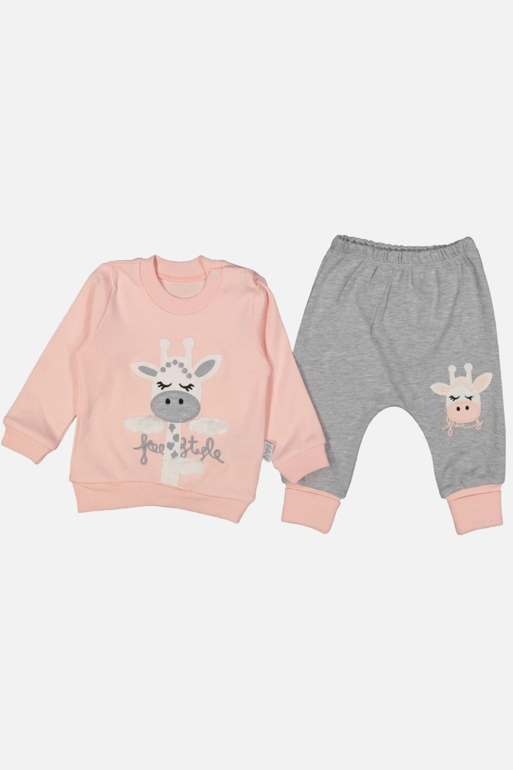 Zürafa Nakışlı % 100 Pamuk Kız Bebek Takımı