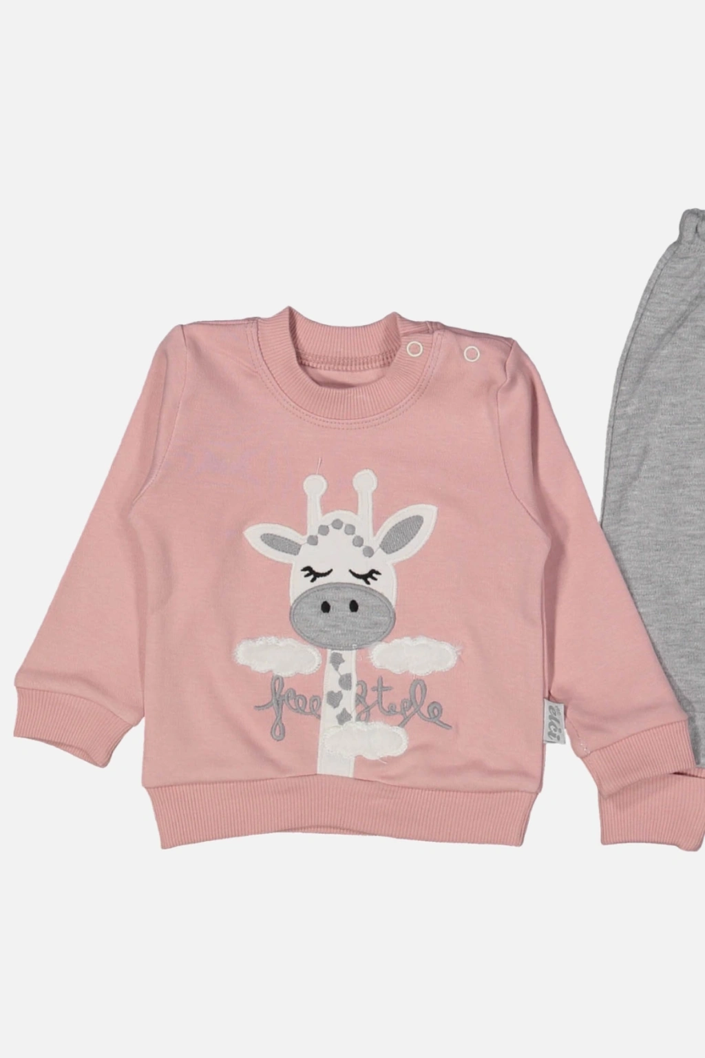 Zürafa Nakışlı % 100 Pamuk Kız Bebek Takımı